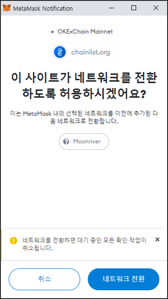 네트워크 추가가 정상적으로 완료되면 좌측 네트워크 목록에 'Moonriver'가 보입니다.