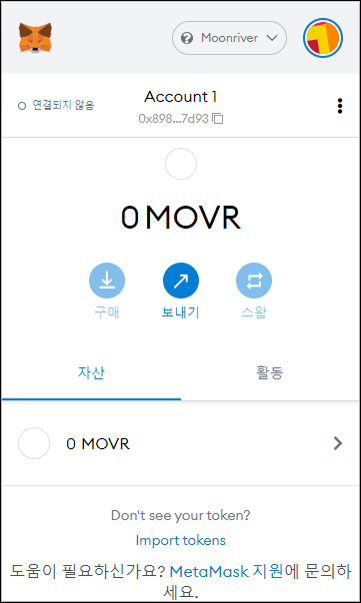 네트워크가 Moonriver로 되어있는 것을 확인하실 수 있습니다.