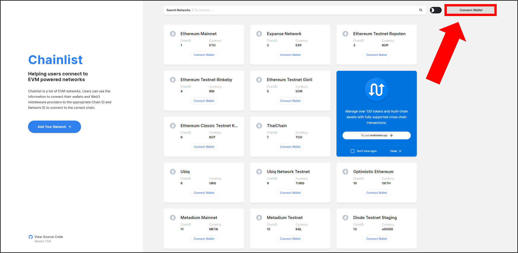 ▼ 체인리스트(Chainlist) 바로가기