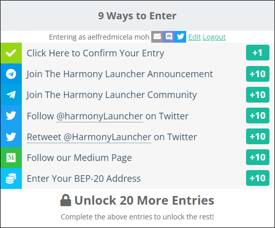 첫 번째로 위 사진과 같이 Gleam 해당 프로젝트에서 요구하는 것을 수행하면 추첨을 통해 화이트리스트 참여 자격권이 부여됩니다.