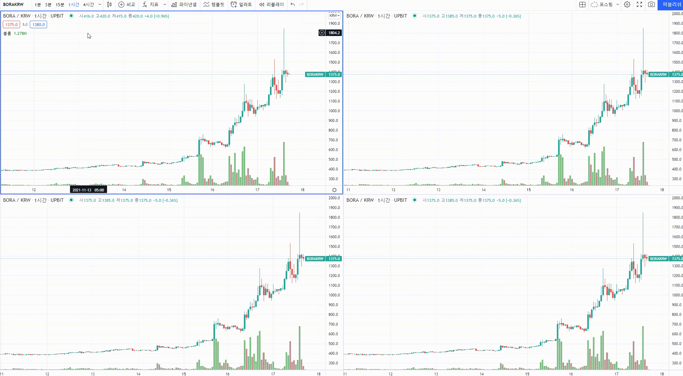 위와 같이 종목을 한 화면만 변경하더라도 나머지 차트까지 같이 바뀌는 것을 확인하실 수 있습니다.