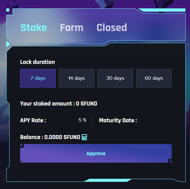 시디파이의 단일 토큰 스테이킹($SFUND)은 4가지 락업 기간 옵션이 있습니다.